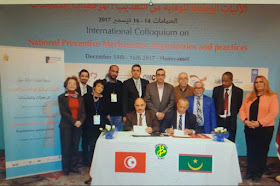 أختم بالقول بأن العلم الجديد كان قد ظهر في تونس من قبل، وهذا مما يزيد الأمر تعقيدا. لقد ظهر هذا العلم خلال الندوة الدولية لآليات الوقاية من التعذيب، وهي الندوة المنعقدة في تونس في الفترة ما بين 14 إلى 16 ديسمبر 2017، وتم على هامشها توقيع اتفاقية تعاون بين الآلية الموريتانية للوقاية من التعذيب والهيئة التونسية للوقاية من التعذيب، وقد ظهر العلم الجديد خلال مراسيم التوقيع على تلك الاتفاقية.